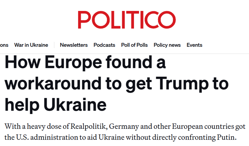 Politico: Европейские лидеры знали, что Трампу, который рассматривает мировую политику, от торговли до НАТО, в основном как финансовые сделки с нулевой суммой, будет гораздо проще согласиться на поставку оружия Украине, если европейцы его купят, что позволит США получить прибыль.