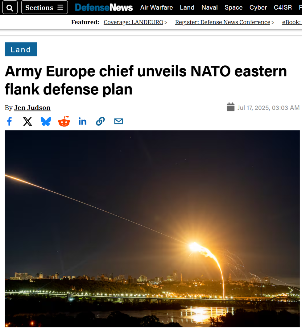 Defense News: Армия США и её союзники по НАТО приступают к реализации нового плана «Линия сдерживания на восточном фланге», направленного на укрепление наземного потенциала и обеспечение оперативной совместимости военно-промышленного комплекса в рамках альянса, заявил в среду командующий сухопутными войсками США в Европе и Африке на первой конференции Ассоциации сухопутных войск США LandEuro в Висбадене, Германия.