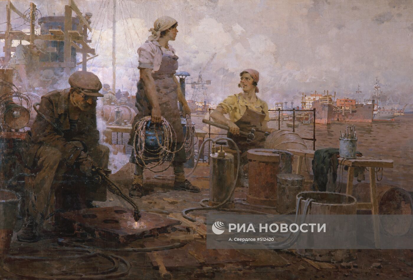 Вот всё бы вам придираться... У Дейнеки вон на картине сплошной ужас и нарушение техники безопасности, ни одной каски и всё дружно стоят под стрелой, ну так и что же теперь...