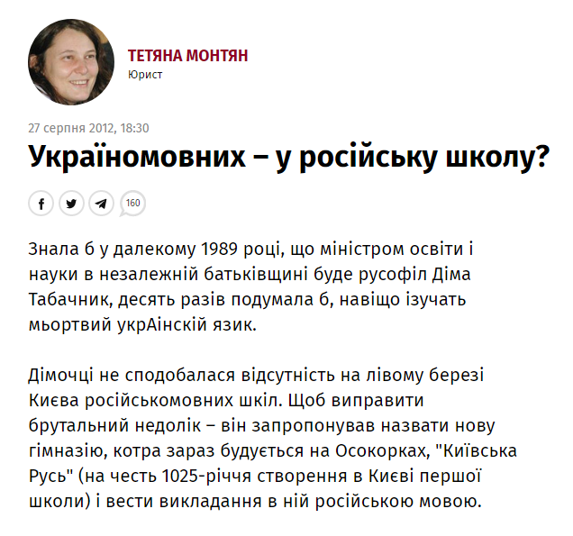 Монтян, помнится, в 2000-каком то году бегала по Киеву и собирала подписи, чтобы закрыть русскую школу. Достаточно знать этот факт про неё, чтобы понимать её сущность.