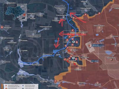 У противника естественным путем формируется две оперативные группировки - на севере Покровско-Мирноградская(№1) и на западе Новопавловка-Котлино(№2). Перегруппировавшись с подтягом резервов, Генштаб Украины, вполне прогнозируемо. начинает свою контригру.