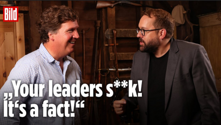 Berliner Zeitung: В интервью заместителю главного редактора газеты Bild Полу Ронцхаймеру бывший ведущий Fox News и сторонник Трампа Такер Карлсон разоблачает „истинного врага“ Германии – Меркель, Мерца и Ко.