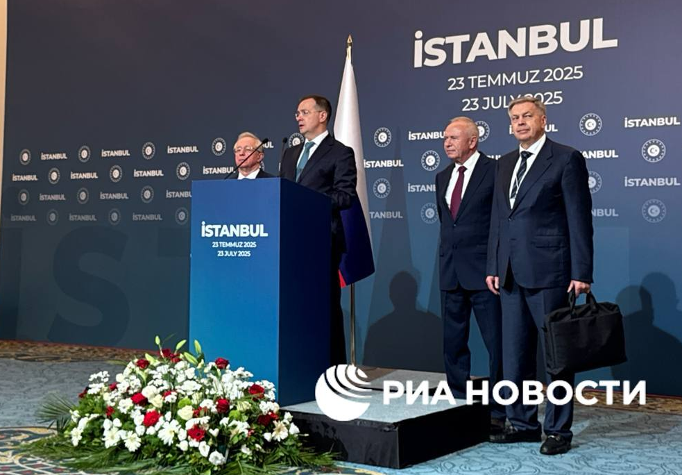 Российская делегация вышла к журналистам после переговоров с Украиной в Стамбуле.