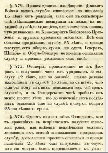 По этому документу срок службы устанавливался не 30, а 25 лет. А про то, что казачество это какое-то "отдельное сословие" в нём не нашёл, к сожалению.