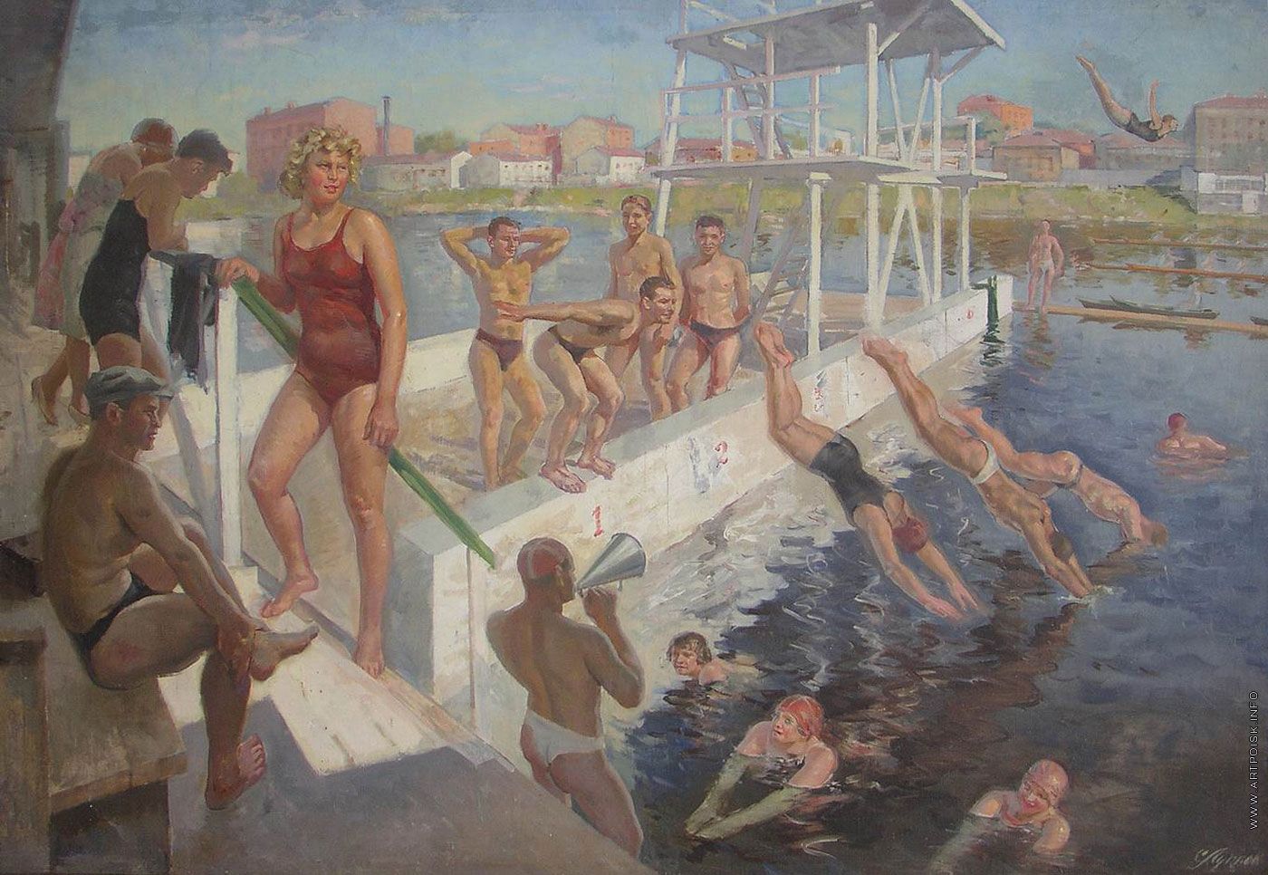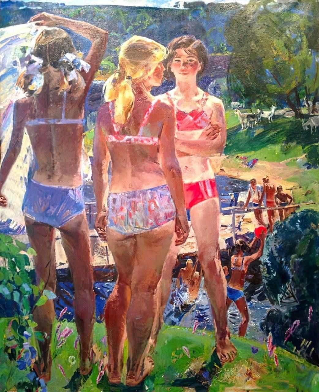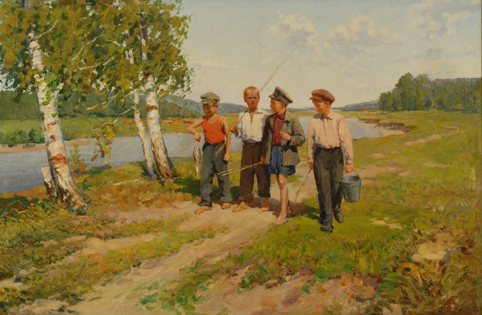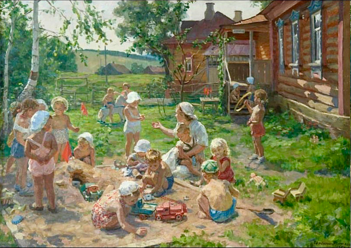 На самом деле, "летних" сюжетов у наших художников гораздо больше: тут и различные виды спорта, и пионерлагеря, и чаепития на пресловутых дачках. А в общем и целом - мне кажется, у наших художников 20 в. выбор тем был несколько шире, чем "пропаганда нищеты и героического труда за копейки".
