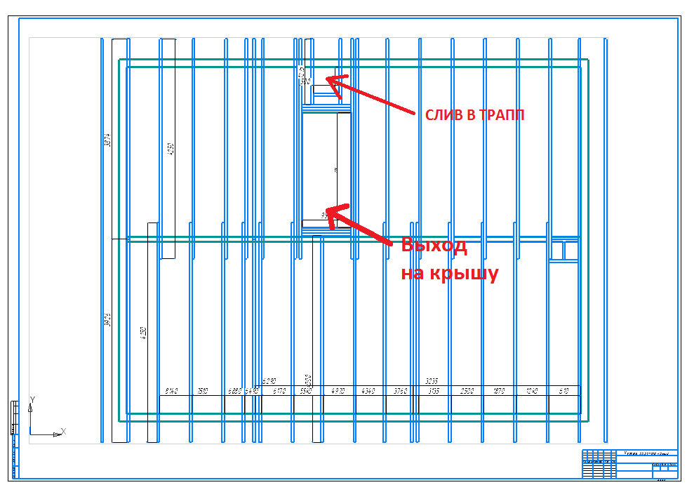 Нарисовал чертеж расположения лаг «пола» крыши с учётом стен, перегородок, второго этажа, нагрузки на м2, будки выхода на крышу. Не хватало только опорной балки для лаг крыши в одной комнате. Этот вопрос был решен декоративной фермой в моем кабинете. Позже она хорошо помогла с зонированием в кабинете и креплением ТВ.