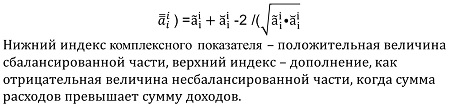 Комплексность заключается в том, что нормируемая сумма разных расходов должна быть всегда постоянной и равной доходам, а в идеале оба вида расходов должны быть равны. С этой величиной сравнивается их текущее произведение, из которого извлекается корень квадратный.