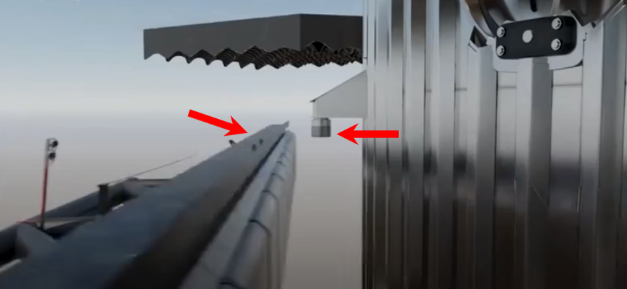 Кронштейн должен с размаху попасть на узкую линейку рычага Мегазиллы. Ошибка на 15 см - и авария неизбежна.