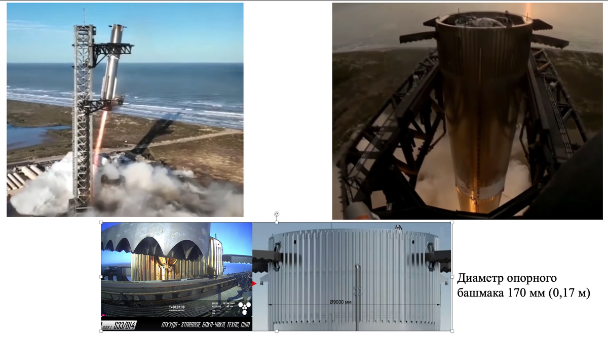 Проведённые нами расчёты вызывают сомнение в реальности некоторых заявленных характеристик ступени «Super Heavy», так как шпангоут, даже усиленный, не держит нагрузку в 50 тонн при заявленном посадочном весе конструкции около 200 тонн.