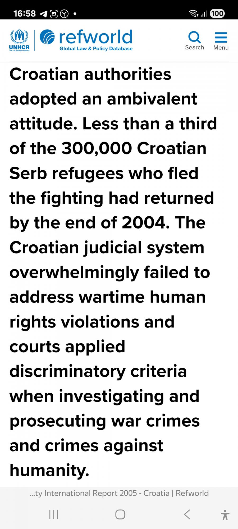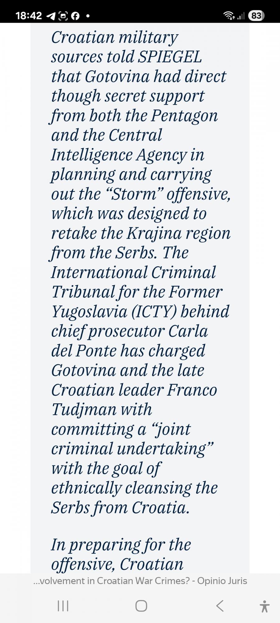 несмотря на то, что было убито большое количество мирных жителей, в т.ч. пожилые и немощные люди, которые не могли бежать, операция "Буря" каким-то образом "не была направлена против некомбатантов". И несмотря на то, что Спегель и Туджман открыто заявляли о своём желании заставить сербов "исчезнуть", ни правительство, ни военные якобы не имели конкретного намерения изгнать всё сербское меньшинство из Хорватии.