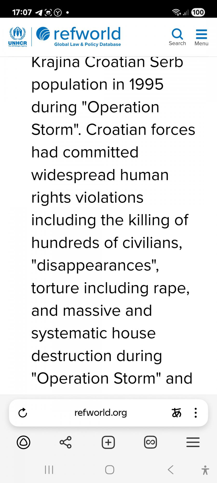в рамках которой хорватская армия бесчинствовала на охраняемых ООН территориях самопровозглашённой Сербской Республики Краина, грабя, сжигая, насилуя и убивая на своём пути проходя через всю провинцию. До 350 тыс/местных жителей бежали, тысячи людей были казнены без суда и следствия.