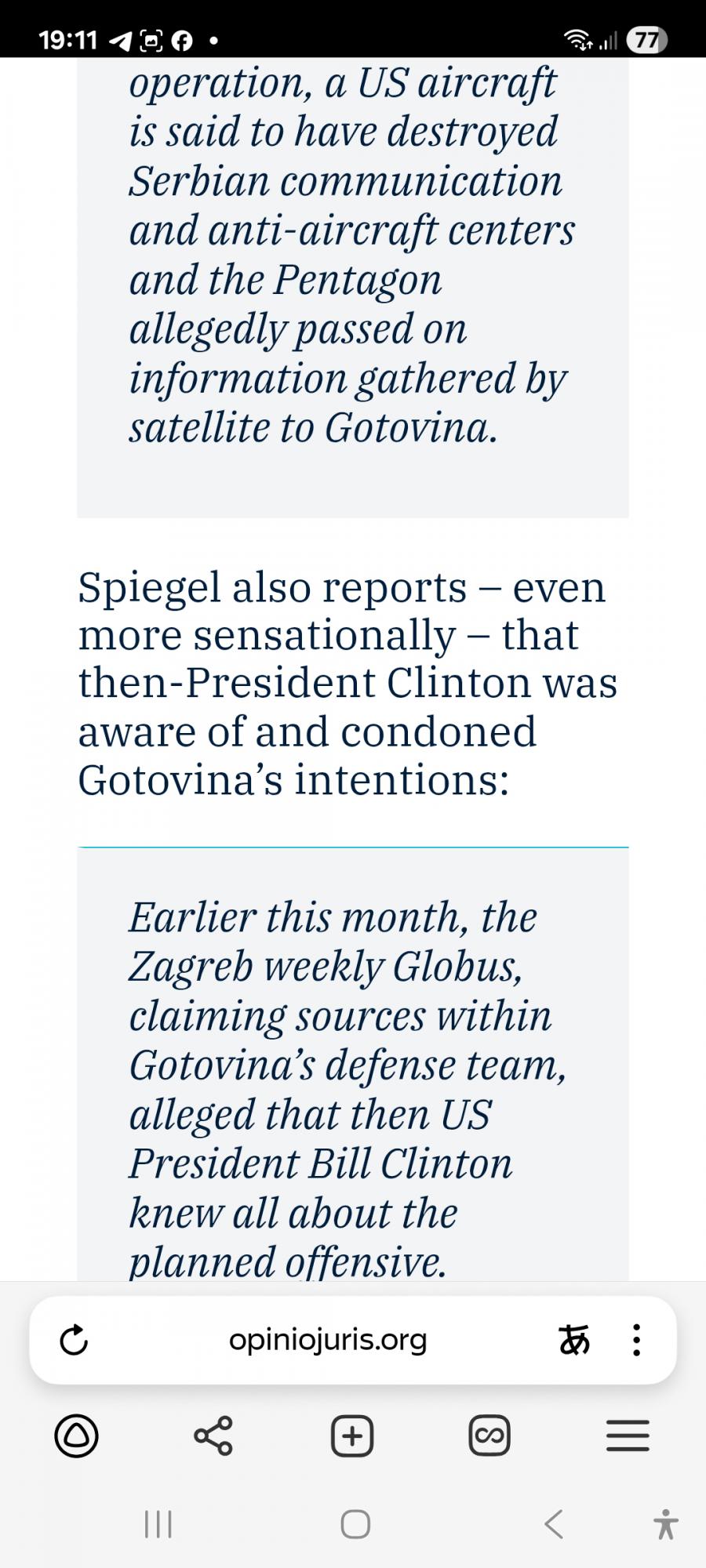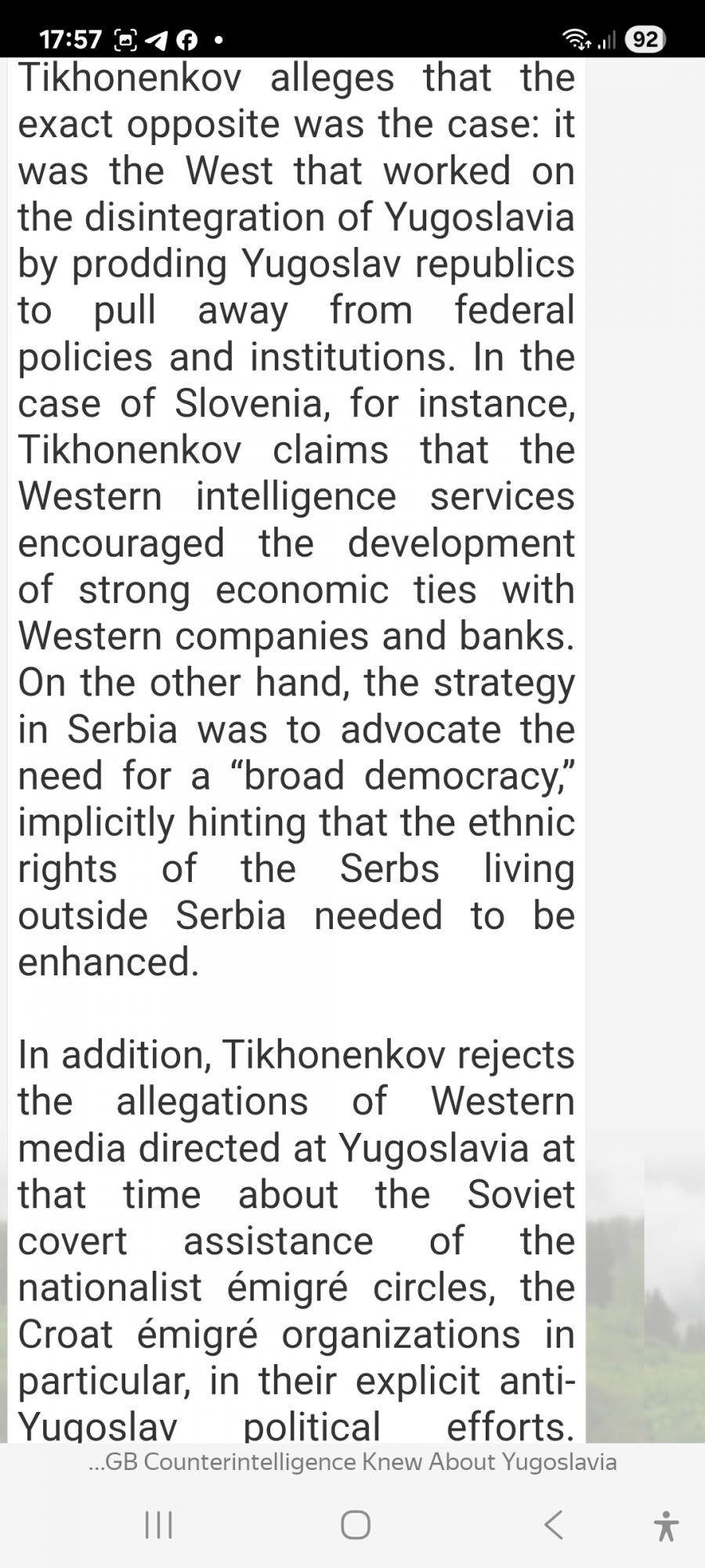 - Словении не было абсолютно никаких причин участвовать в расчленении Югославии, но кто-то подтолкнул её к этому или, скорее, кто-то поставил её в такие условия, что она будет признана, если внесёт свой вклад в расчленение Югославии в целом.