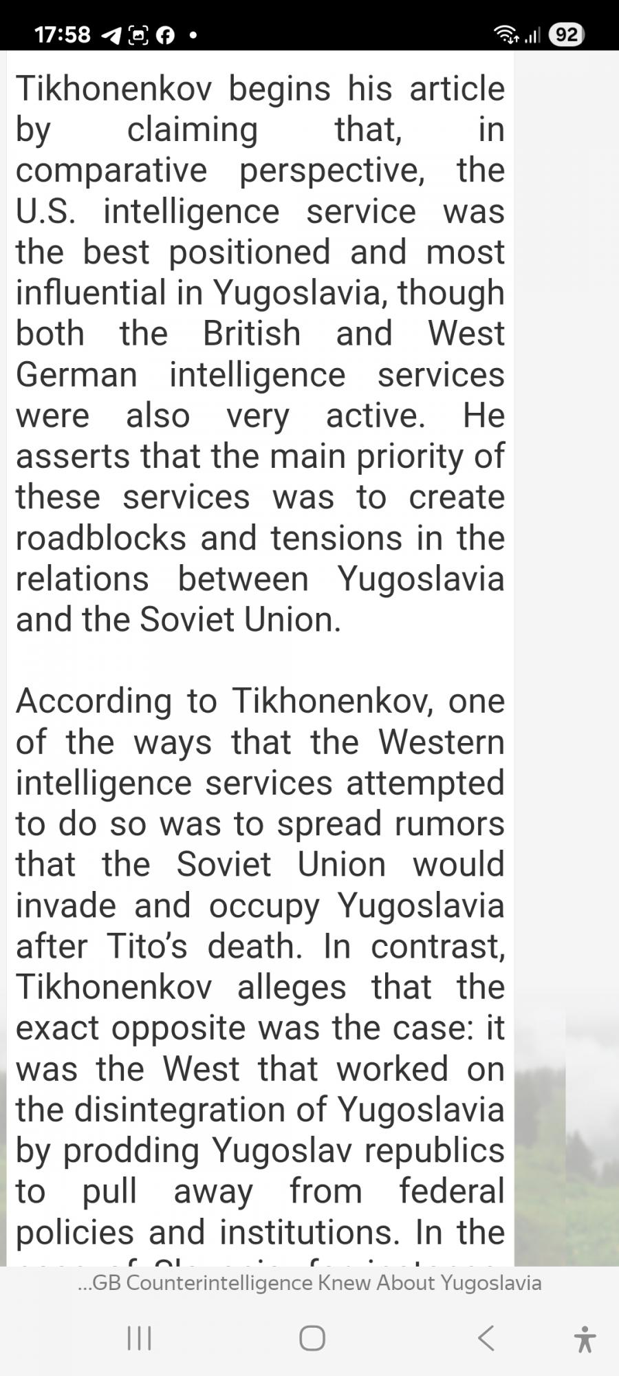Была оперативная информация от разведки о том, что Янса и Бавчар работали по заданию немецкой разведки над исследованием- проектом "Как спровоцировать гражданскую войну в Югославии".