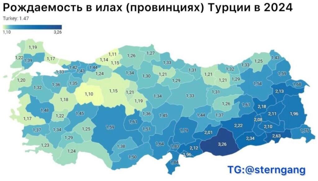 Карта Турции по рождаемости
