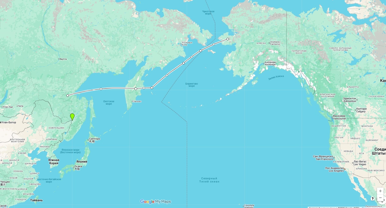 А если проложить по Беринговому и Охотскому морю с промежуточной ГТС на Камчатке?