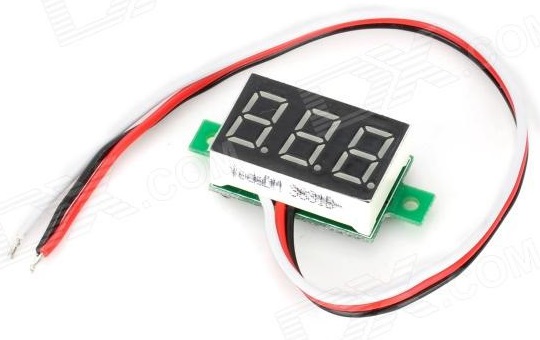 Для отображения напряжения на выходе платы фазового детектора AD8302 необходимо подключить к этому выходу измерительное устройство. Я в своем эксперименте использую трехпроводный миниатюрный вольтметр (рисунок 7), который позволяет измерять напряжение в диапазоне от 0 до 30 В.