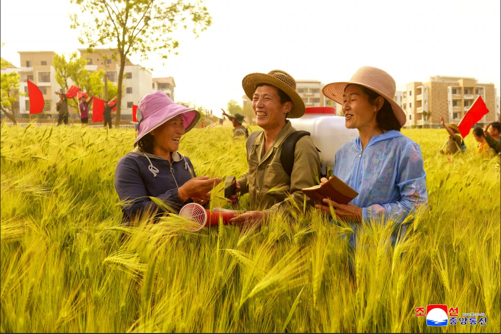 В городе Чонджу на юге провинции Пхёнан-Пукто, КНДР, идет уборка пшеницы. Чиновники и аграрии сообщают о необычайно высоком для этой территории урожае – на тонну с гектара больше, чем в предыдущем году. Так, рабочая бригада №6 фермы «Сема» собирает до 8,5 тонн с гектара, потому что они взяли на вооружение высокоурожайный сорт.