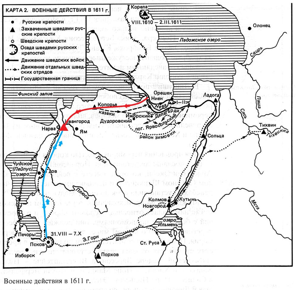 Затем в конце мая 1611 года шведы двинулись по направлению к Новгороду.