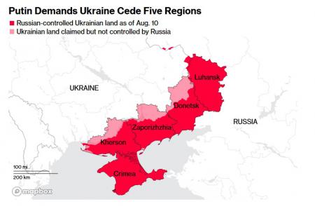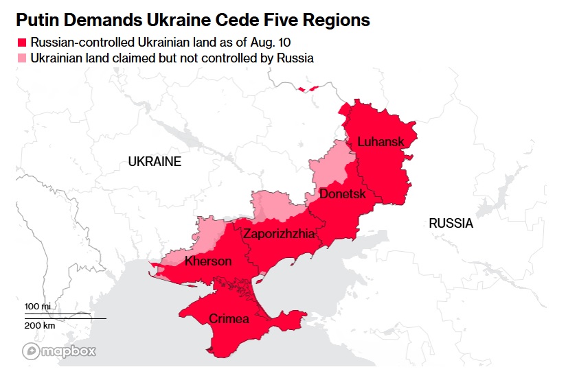 Россия также прекратит выдвижение претензий на части Запорожской и Херсонской областей Украины, которые она ещё не полностью контролирует, фактически заморозив линии фронта на их нынешних позициях.