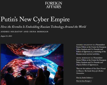 25 августа Foreign Affairs: В конце апреля 2024 года Николай Патрушев, многолетний руководитель Совета безопасности России, провёл в Санкт-Петербурге совещание с высшими силовыми чиновниками стран Африки, Азии, Латинской Америки и Ближнего Востока. Повестка была посвящена суверенитету и безопасности в информационной сфере — кремлёвскому обозначению кибертехнологий, призванных защищать от западного слежения, влияния и вмешательства. Однако у Патрушева было и более конкретное послание. В окружении Сергея Нарышкина, директора Службы внешней разведки (СВР), Патрушев сообщил аудитории, что ведущие российские компании в сфере кибербезопасности могут помочь их правительствам взять под контроль национальное информационное пространство.