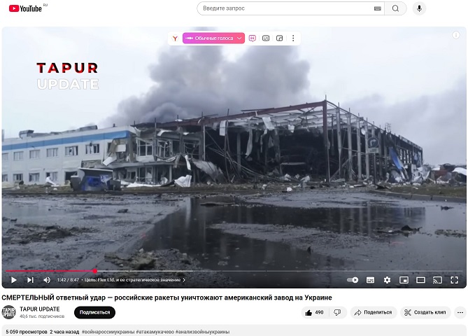«Последний удар России потряс мир, хотя и произошёл не на передовой. Американский завод электроники в Мукачево на западе Украины был полностью уничтожен массированным российским ракетным ударом. Почему была выбрана именно эта цель? Как был нанесён удар с такой точностью? И почему НАТО, похоже, стоит в стороне?»