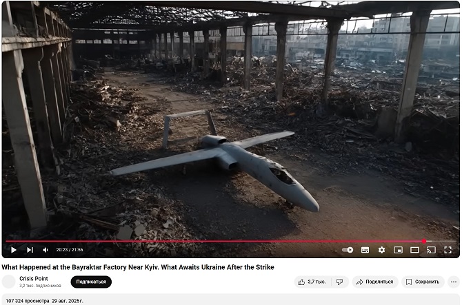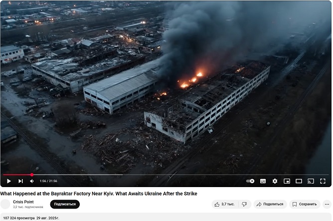 На самом деле больше похоже на кампанию по дезинформации, что производство якобы сильно повреждено / уничтожено. Скорее всего настоящий завод находится совсем в другом месте. Прилагаемое видео содержит кучу якобы реальных снимков, которые очень напоминают "творчество" ИИ.