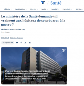 Le Figaro: "Действительно ли Министерство здравоохранения (Франции) призывает больницы готовиться к войне?"
