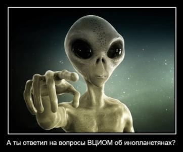 Регулярно участвую в опросах ВЦИОМ около 3-х лет, прошёл их около 30-ти. Сегодня прислали самый необычный: наши государственные социологи решили спросить жителей России об инопланетянах.