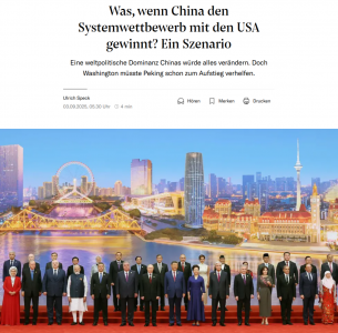 Neue Zürcher Zeitung: Все более очевидно, что Китай конкурирует с Америкой за роль ведущей мировой державы. США по-прежнему лидируют во многих областях, но Китай отстает экономически, технологически и в военном отношении. Как может развиваться гонка в ближайшие пять лет?