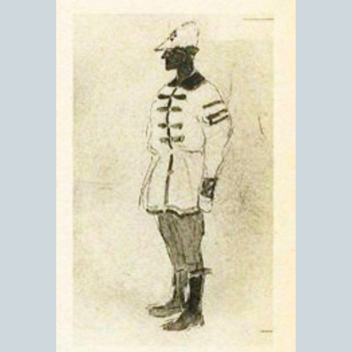 Эти на самом деле целиком и полностью большевистские будёновки тоже стали притчей во языцех в результате чьего-то непомерного желания утереть нос врагам, на этот раз РКМП-шники советофилам. На самом же деле [14] комиссия, созданная ИудушкойТр в апреле 1918г., не исключено, в некоей мере использовала эскизно-проектные наброски формы 1912г., которые и стали в какой-то степени отправной точкой для новой. Однако имеются и оригинальные советские эскизы Н.А.Езучевского и Б.Н.Кустодиева (окончательная доводка их за художником В.Д.Барановым-Россине), часть которых хранится в Дарвиновском музее, а часть опубликована Б.Сопельняком и А.Степановым. Об участии Кустодиева в этой работе написала его дочь в своих воспоминаниях.