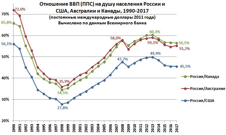 740% обеспечено исключительно практически дном падения экономики после перехода к капитализму. Если посмотреть глублже с 1990. То, по отношению к другим странам РФ только ухудшила свои позиции