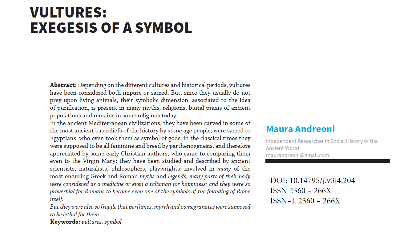 Что вызывает самый большой интерес и сильнейшее недоверие, так это приписываемая им способность провидеть будущее (имеется в виду не видеть картинками, а чувствовать, интуичить его). Ниже приведу выдержку из статьи «Грифы: толкование символа» Мауры Андреони, независимого исследователя в области социальной истории Древнего мира: