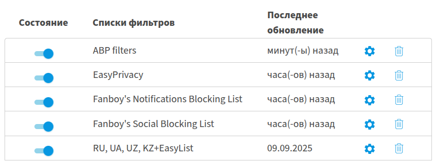 Заметил, что как-то неровно стал выпиливаться хлам со страниц Firefox'а, залез в настройки Adblock Plus, а там такое: