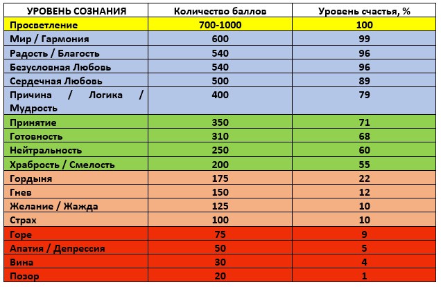 Но где ошибка Хокинса? Ладно он утверждает, что горе – это уровень сознания, но он ещё говорит следующее: