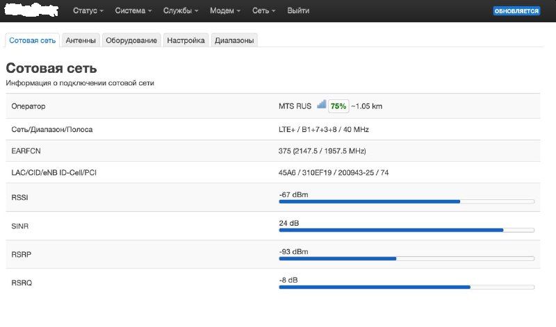 Всё лето было отлично: работа по циско-туннелю, любые стримы футболов, снукера - без проблем и тормозов в HD. СИМ-карта у меня с безлимитным интернетом, модем хороший (не скажу, какой), в гнёзда Антенна 0 и Антенна 1 вкручены самодельные "Би-квадрат Харченко" и "Гнутик". RSRP в зависимости от погоды двигается в пределах 95 - 85.