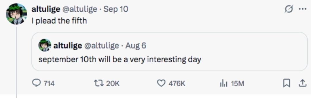 Другой аккаунт, судя по всему, принадлежащий к той же субкультуре, опубликовал пост 6 августа: «10 сентября будет очень интересным днём».