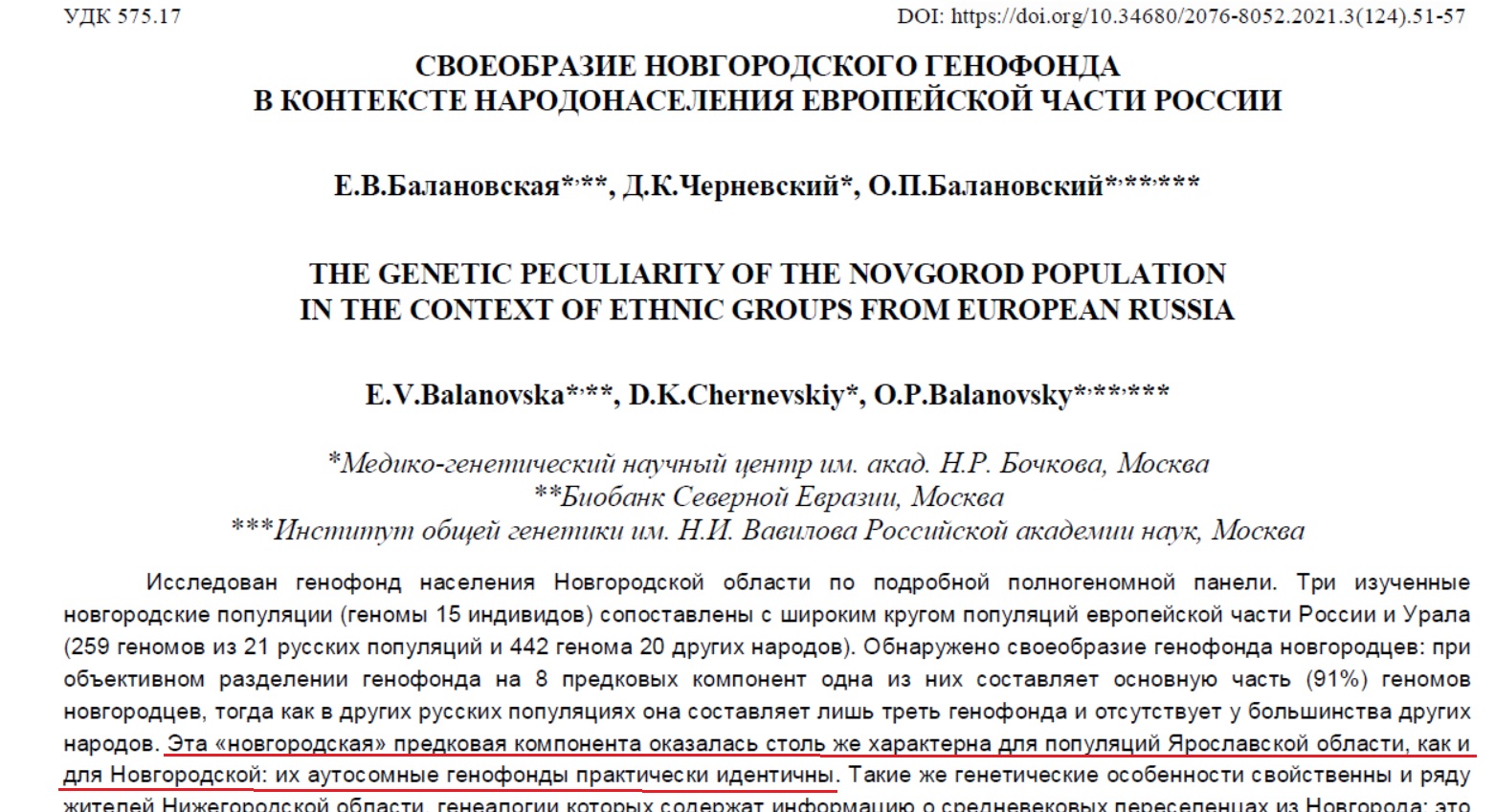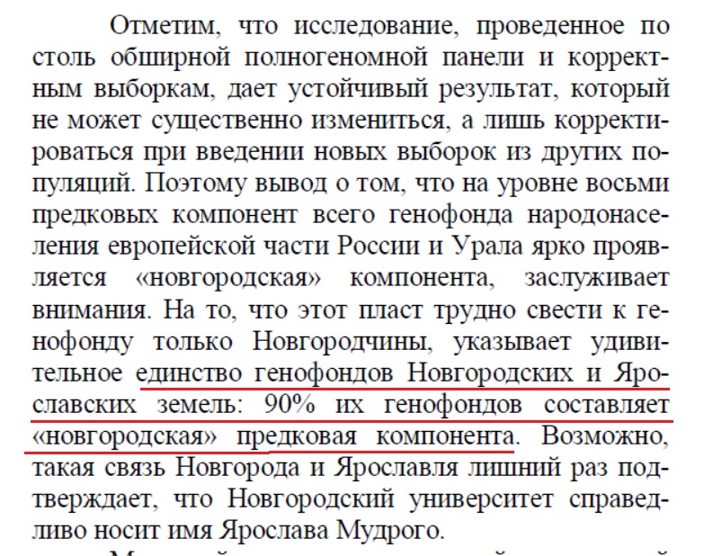 Условно «новгородская» предковая компонента оказалась в итоге "ярославской" или "верхневолжской", а Новгород-на-Волхове оказался по ту сторону генетического барьера.