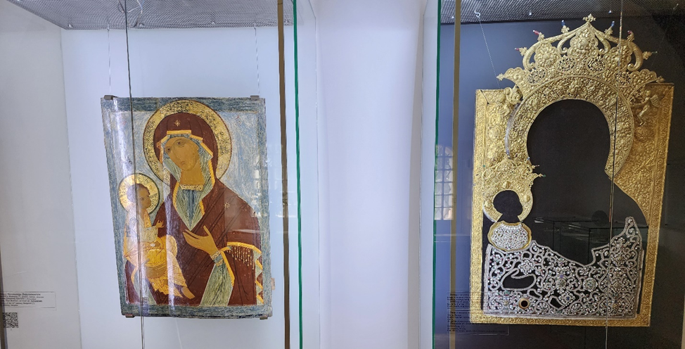Рис.5. Икона Богоматерь Иерусалимская и оклад к ней. Выставка «Сокровища Ярославля», Ярославский музей-заповедник. Фото автора, конец августа 2025 г.