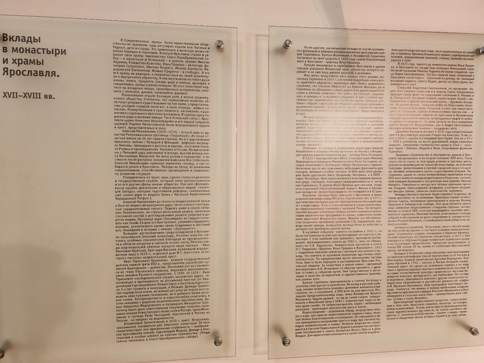 Рис.7. Аннотация к экспозиции «Вклады в монастыри и храмы Ярославля». Выставка «Сокровища Ярославля», Ярославский музей-заповедник. Фото автора, конец августа 2025 г.