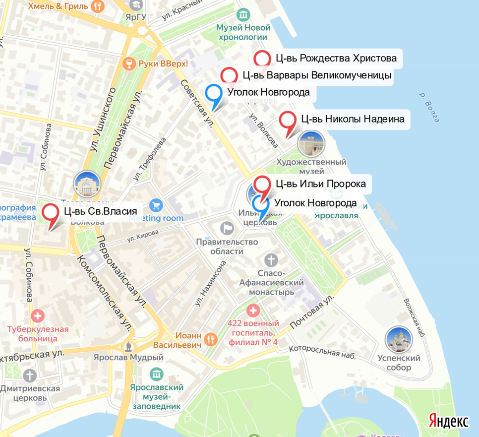 Ну как к тебе после этого серьезно относиться? Показанные тобой места в 16-17 веках вовсе не были центром Ярославля, а как раз его окраинными районами. Во-вторых, места храмов не говорят о местожительстве людей, его строивших. В-третьих, а почему потомки новгородцев не могли обосноваться в центре города? Путин вон тоже не москвич. Считаешь, что он обязан жить в Химках?