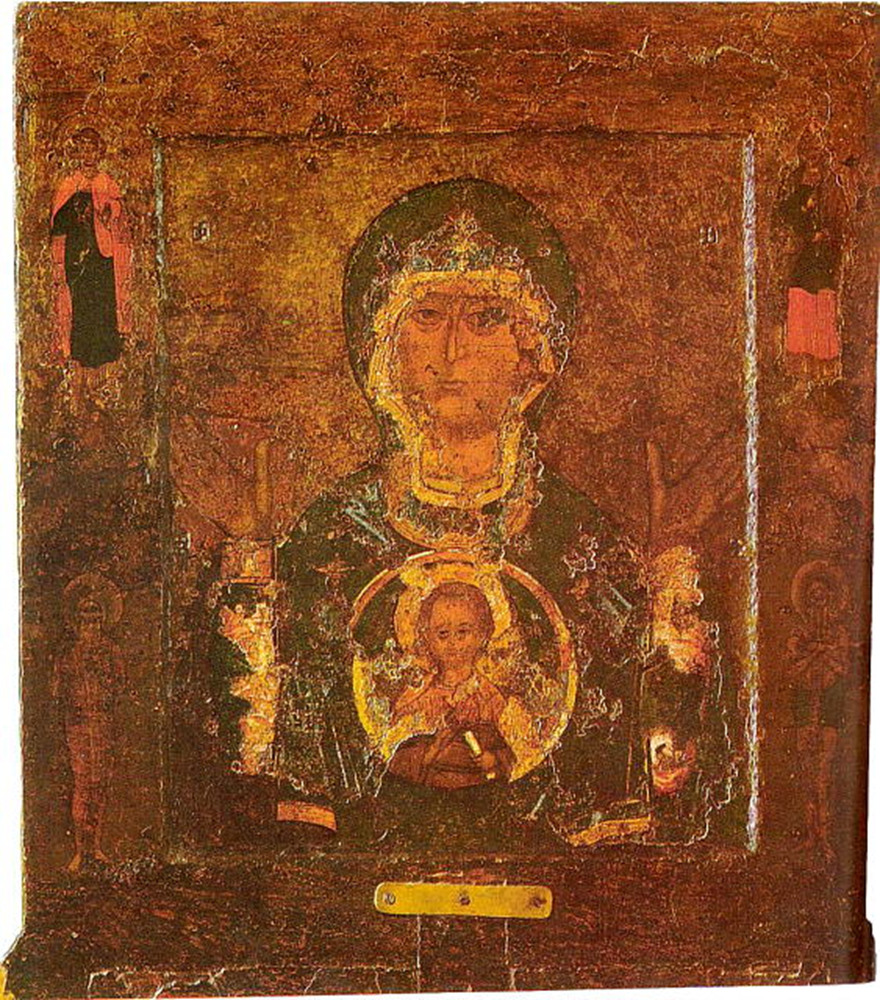 Икона. Богоматерь Иерусалимская. Начало 16 в. Новгород (?). Дерево, левкас, темпера. Из церкви Рождества Христова г. Ярославль.