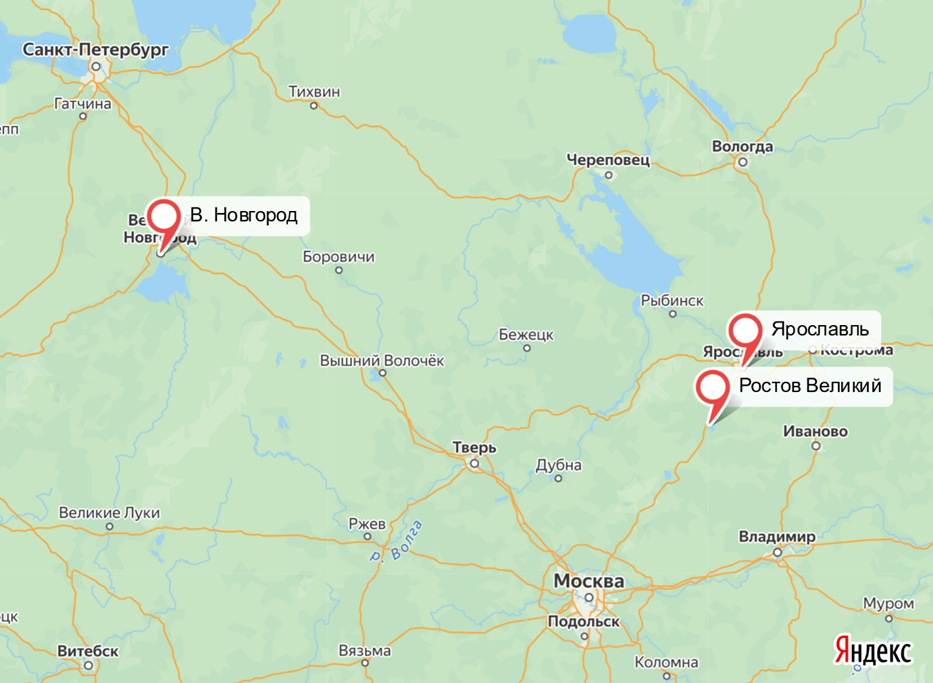 Какие связи Новгорода и Ярославля и на каком древнем торговом пути?! Не выдумывайте. Приводите доказательства, а не просто рассуждения как вам кажется.