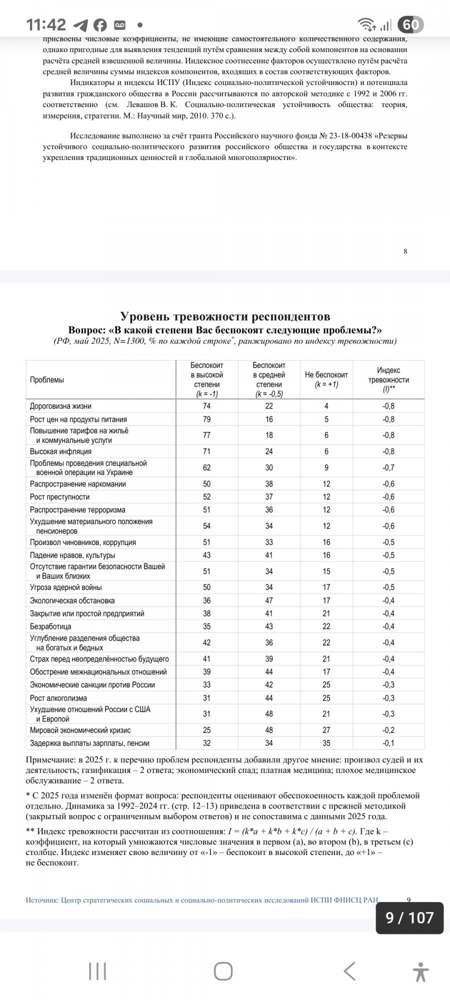 Вообще, из 24 пунктов тревожности списка только 9 выше среднего (из них только два военных: СВО- 62%, терроризм- 51%), 4- среднего уровня тревожности и 11 пунктов ниже среднего.