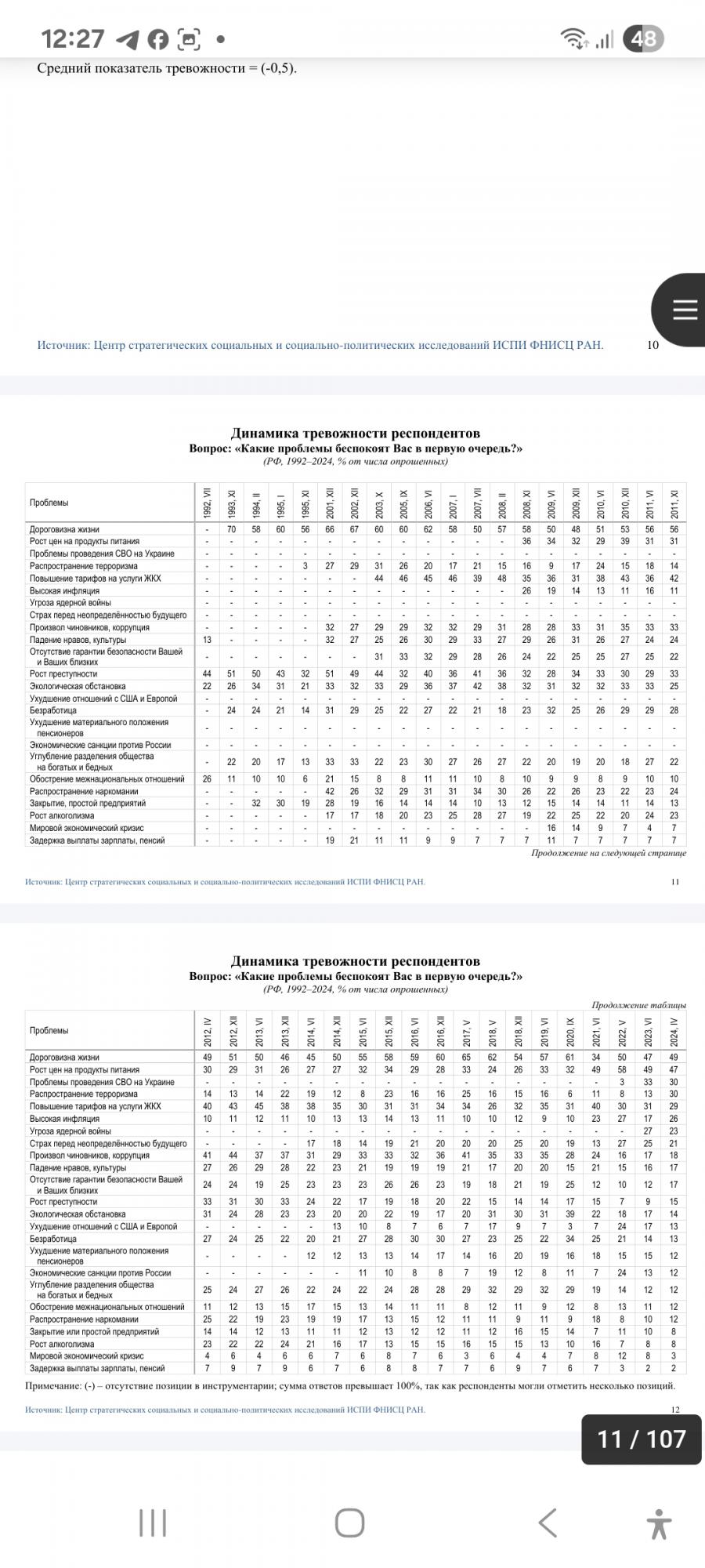 Опять же, с учётом ведения СВО-более, чем приличный показатель на фоне более высокого уровня тревожности по мирным проблемам: 2015-16 гг.- 26;