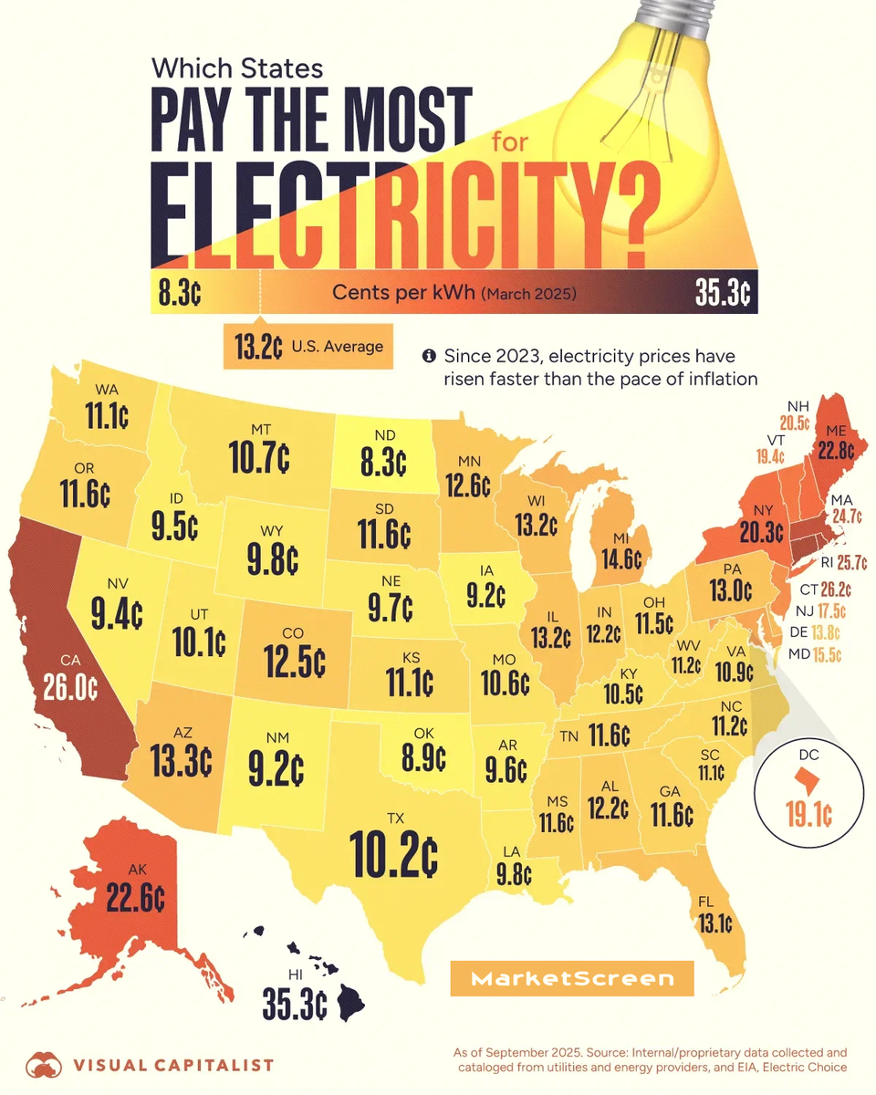 Такие штаты, как Коннектикут, Калифорния, Род-Айленд и Массачусетс, постоянно входят в число лидеров по стоимости электроэнергии. Эти регионы часто имеют более высокие затраты на инфраструктуру, более строгие экологические нормы и больше возобновляемых источников энергии.