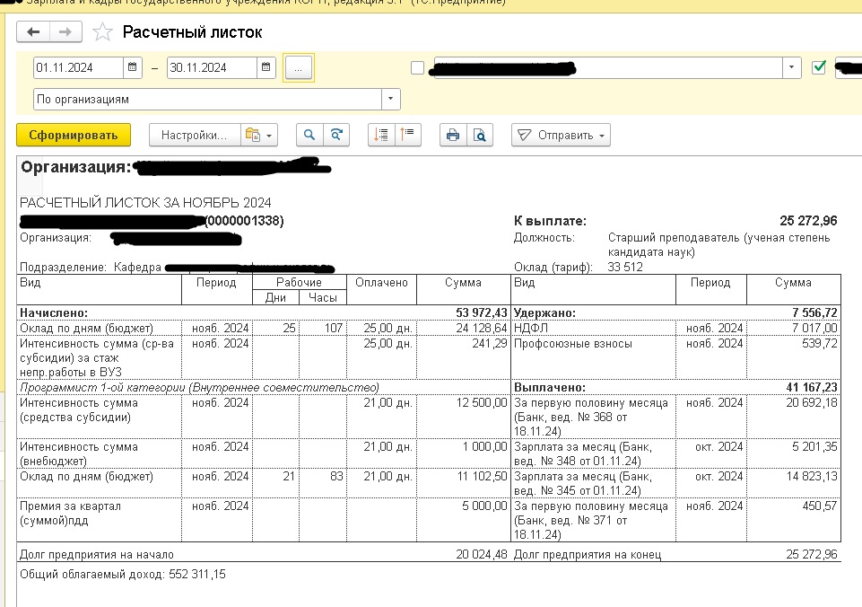 Жду Ваши расчетные листки, допустим за ноябрь 2025 и март 2026.