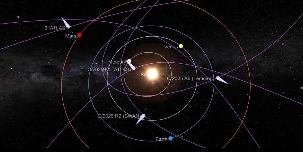 Солнце -- [Венера] -- [3i/ATLAS!] --> [ЗЕМЛЯ] -- [Марс]