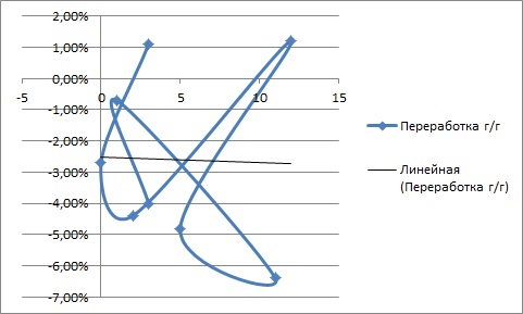 В том полугодии было общее снижение переработки примерно на 2,5%, но тренд практически горизонтальный - от количества ударов это снижение не зависело.