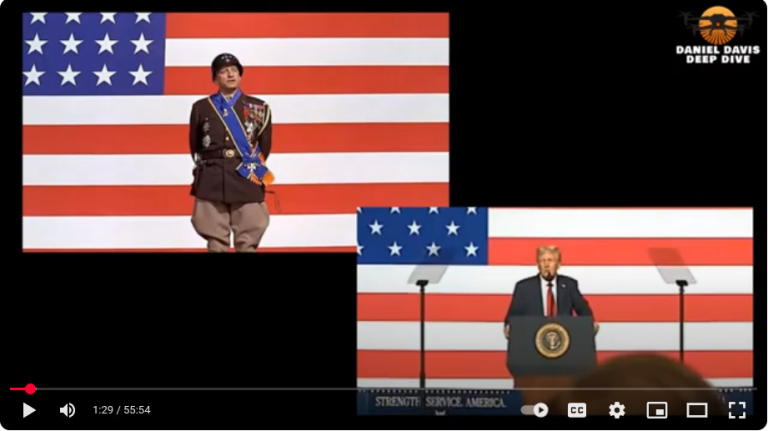 Вчерашнее выступление Дональда Трампа в Квантико перед собравшимися генералами вооружённых сил США было фарсом самолюбования (а не выдающимся достижением). Его попытка подражать покойному Джорджу К. Скотту в его культовой роли в «Паттоне» провалилась, потому что вместо содержательного и яркого выступления Трамп больше часа повторял свои стандартные фразы — например, что эта война никогда бы не началась, если бы я был президентом, но делал это без особого энтузиазма. Определённо малоэнергичный момент.