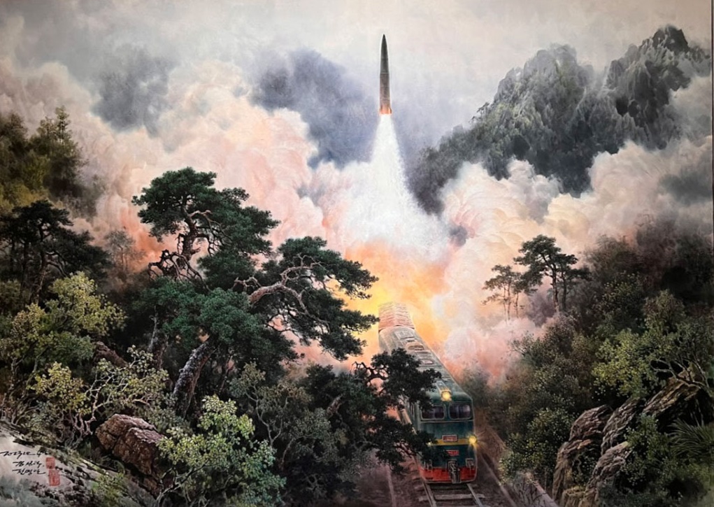 «Среди экспонатов такие художественные произведения, как «Горы Пэкту» Чвэ Чхан Хо, «Страна единодушия и сплоченности» Пак Мён Ир, Пак Мён Чхор, Чвэ У Сон и Ким Со Чхор, «Отряд славных воинских знамен» Ли Кир Хо, Чан Ви Сон, «Счастливый наш родной край» Хван Мин, Пак Кван Рим и другие шедевры современных авторов, которые смогли объединить вековые техники и актуальные сюжеты».